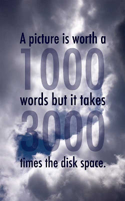 A pictures is worth a 1000 words but it takes 3000 times the disk space.